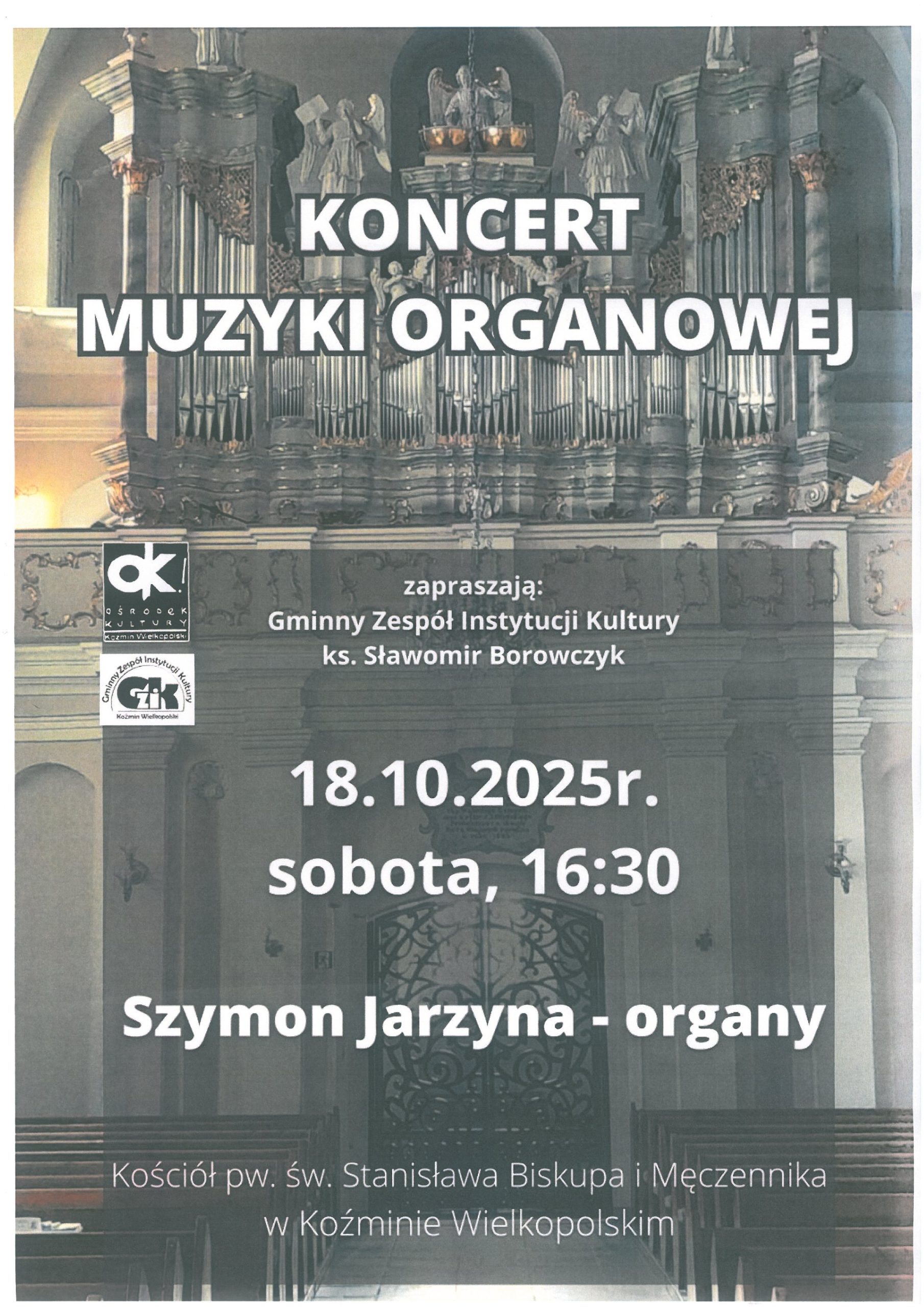 - Za tydzień w sobotę o godz. 16:30 nasza parafia wraz z Gminnym Zespołem Instytucji Kultury zapraszają na koncert muzyki organowej w naszym kościele. Szczegóły na plakacie.